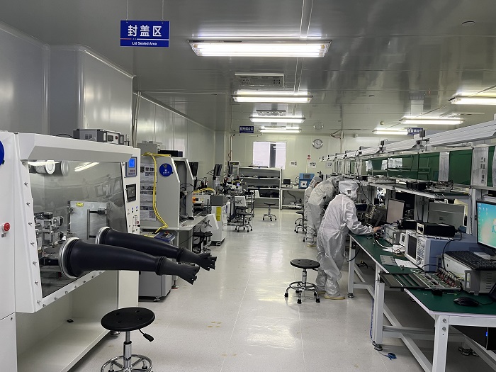 metrov štvorcových. Môžeme vyrobiť 10 000 ks koaxiálnej laserovej diódy alebo fotodiódy InGaAs za mesiac, 2 000 ks motýľových pumpových laserových diód, DFB laserových diód, superluminiscenčných diód za mesiac, 100 ks EDFA a ASE zdroja za mesiac.