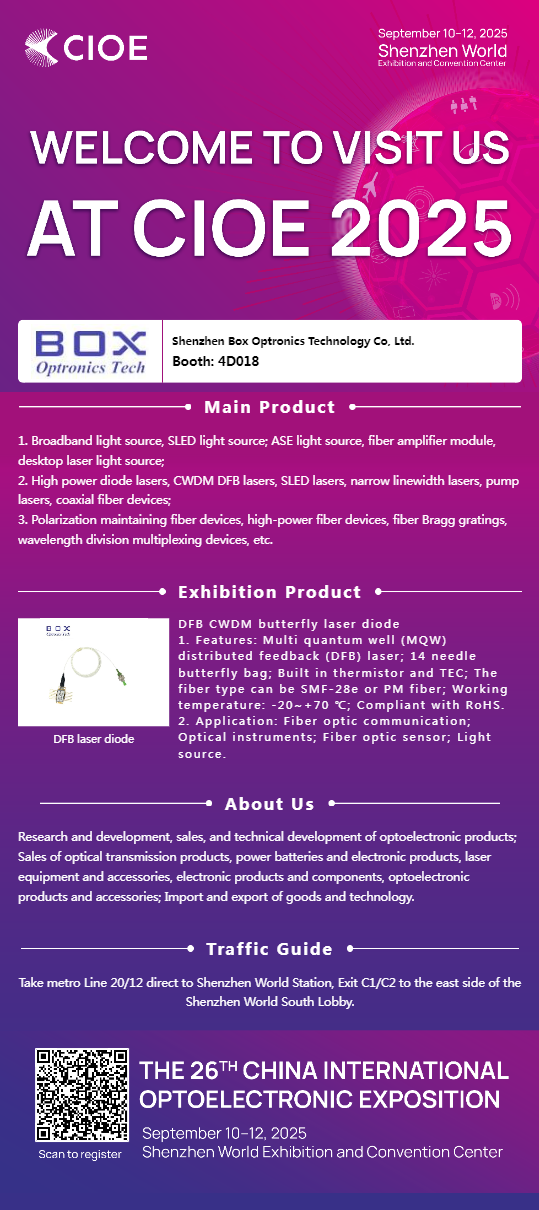 Copyright @ 2020 Shenzhen Box Optronics Technology Co., Ltd. - Čínske optické moduly, výrobcovia laserov spojených s vláknami, dodávatelia laserových komponentov všetky práva vyhradené.
